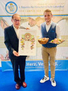 Wie sehr er diese anspruchsvollen Themen verinnerlicht hat, bewies der 30-jährige Profanter, der bereits mehrere Ausbildungen – u.a. als Weinsommelier – erfolgreich absolviert hat.Die 1. Bayerischen Fleischerschule Landshut zeichnet Fleischsommelier Thomas Profanter mit Bestnote aus.