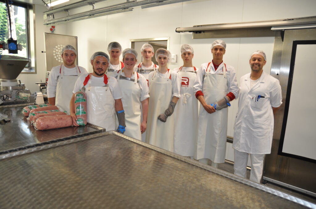 Die Klasse LG4 mit Lehrer und Fleischermeister Dominik Stiefsohn (r.)