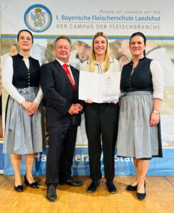 Darunter auch die Österreicherin Bettina Wimpissinger aus Angath im Bezirk Kufstein, die im Juli 2023 ihre Meisterausbildung in Bayern erfolgreich abschloss. Nach der Matura studierte Wimpissinger Wirtschaft und Management – Wahlmodul: Marketing, Organisationsentwicklung und Innovation. Aktuell arbeitet sie im elterlichen Betrieb Fleischerei Wimpissinger und wird diesen später übernehmen. Sichtlich stolz und strahlend nahm Wimpissinger in Begleitung ihrer Familie das Ehrendekret entgegen.