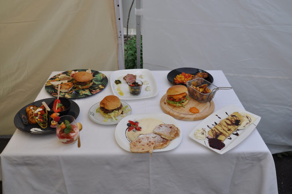 Die Drittklassler hatten sich eine Menge einfallen lassen, um die Juroren nicht nur kulinarisch, sondern auch mit ihrer Inszenierung zu beeindrucken. Jede der drei Mannschaften hatte drei Gänge zuzubereiten. Gang eins bestand aus einem Burger, Gang zwei aus dem Schweinefilet mit passender Begleitung. Den süßen Abschluss sollte ein Dessert nach freier Wahl bieten.