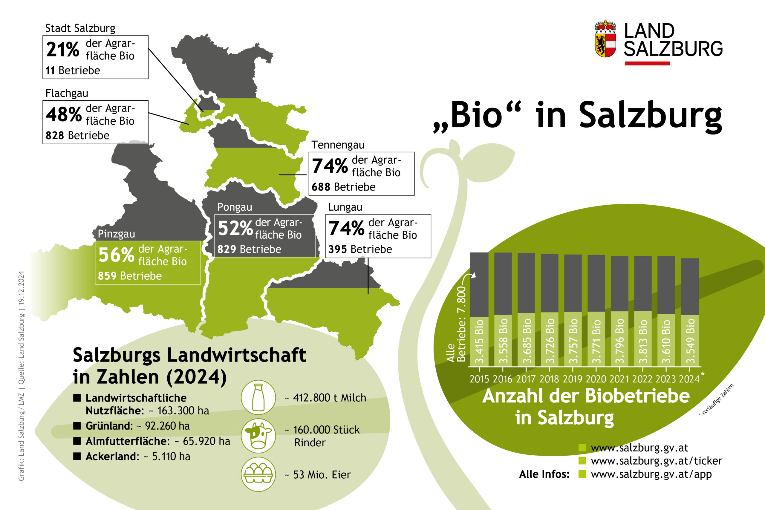 - Lungau: rund 74 Prozent der Agrarfläche sind Bio, 395 Bio-Betriebe