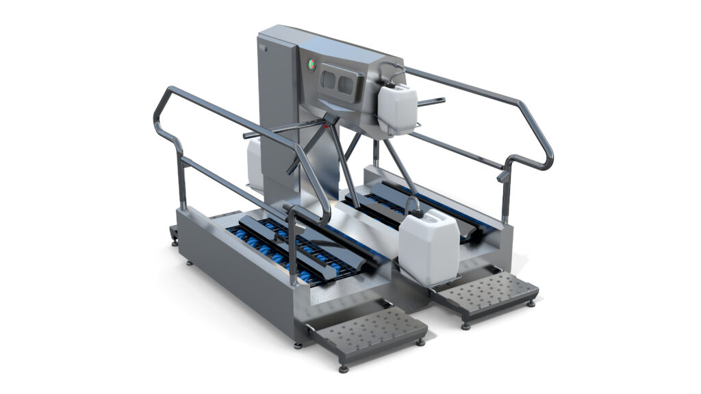 Ein großer Faktor im Hinblick auf Hygiene ist die Frage, wie gelangen die Mitarbeiter von der „unreinen“ Straße am effizientesten sauber und desinfiziert in den hygienesensiblen Bereich? Auf diese Frage hat PHT die passende Antwort, denn durch die über 20 Jahre Erfahrung entwickelt PHT ein Gesamtkonzept sowohl für kleine Betriebe als auch Großproduktionen. Handwaschbecken, Händetrockner und Handdesinfektionsmög- lichkeiten, Sohlenreinigungs- und Sohlendesinfektionsanlagen sowie ein Zugangssystem zur Reinigungs- und Eingangskontrolle gehören zu der Grundausstattung einer Hygieneschleuse. Durch die jahrelange Erfahrung kennt PHT die effizienteste Mitarbeiterführung für Personalhygiene –, denn die beste Technik hilft nicht, wenn die Mitarbeiter versuchen, diese zu umgehen. Je nach Mitarbeiterfrequenz bietet PHT das passende Konzept als Zwangsführung – das bedeutet, sie sind so konzipiert, dass jeder Mitarbeiter sich die Hände desinfizieren und Sohlen reinigen muss um durch das Drehkreuz zu gelangen. Doch um hier keinen Frust aufkommen zu lassen, sollte sich der Prozess so einfach und effizient wie möglich gestalten.