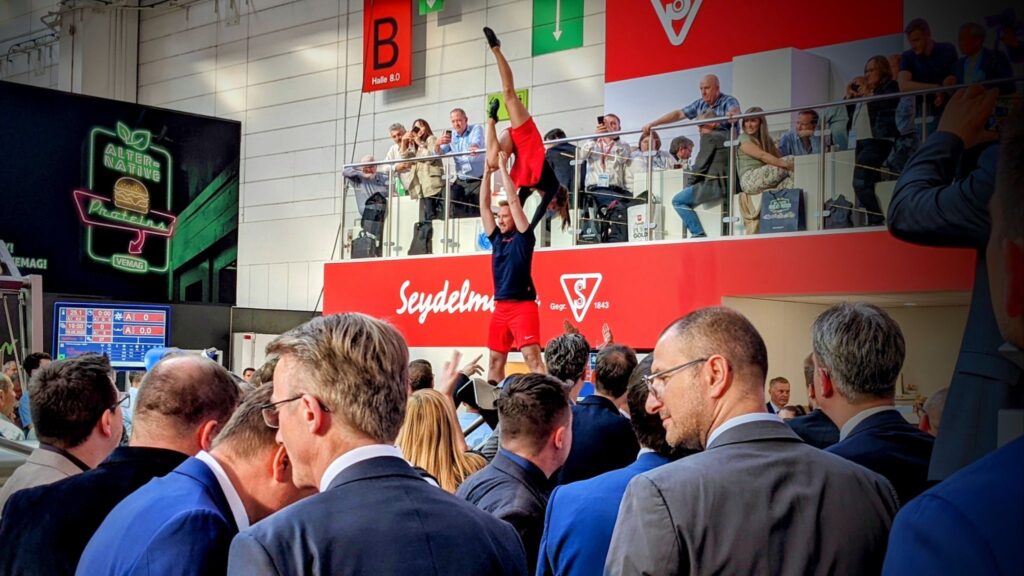 Über 50 Maschinen, zwei vollautomatische Produktionslinien, Neuheiten wie den Vakuum-Konti-Kutter KK 144 AC-6, den Universalwolf AW 300 U und den Normwagentumbler VTT 300 X konnten die IFFA-Besucher:innen am Stand der Maschinenfabrik Seydelmann live erleben. Aber nicht nur das: Es gab auch die Live-Produktion einer Bratwurst und einer veganer Wurst – und bei der Standparty gab es eine Tanz-Vorführung vom Feinsten. © Beigestellt