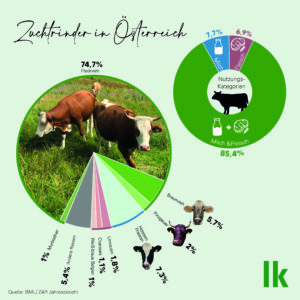 Die häufigsten Rinderrassen samt Hauptnutzung.(©BLM/ZAR Jahresbericht)