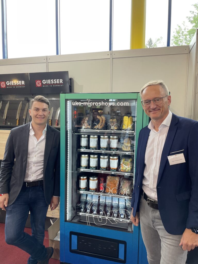 Die Automaten-Kaiser: Fleischerverband -Geschäftsführer Mag. Wolfgang Hartl (r.) mit UKO-CEO Moritz Unterkofler. © Beigestellt