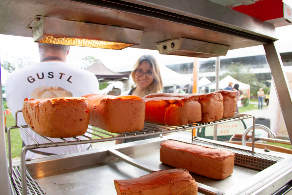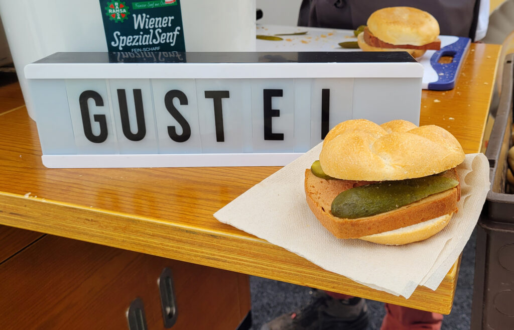 „Viele“, so Ruedl, „denken, dass vegan produzierte Lebensmittel grundsätzlich aus dem Labor stammen, davon sind wir aber weit weg. Bei uns geht es ganz einfach ums Handwerkliche. Wir haben einen Kutter, in dem wir die Zutaten mixen und im Ofen den ,Gustl‘ wie jeden normalen Leberkäse fertig backen.“