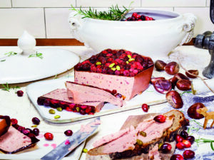 Frisches Schweine- und Rehfleisch, sorgfältig vorbereitete Schweineleber ohne Bitterstoffe, reichlich Obers, Waldpilze und Gewürze machen die Leberpastete mit Rehfleisch zu einer kräftigen Winterspezialität. Die Garnitur aus Cranberrys und knackigen Pistazien gibt der cremigen Pastete ein unverwechselbares Erscheinungsbild. Sie ist exklusiv von September bis April erhältlich.