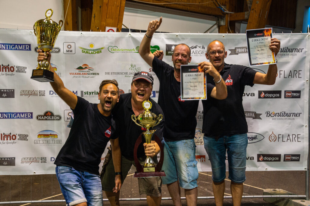 Den Sieg bei den 24. Internationalen Austrian Grill Open holte sich schlussendlich das Tiroler Team BO’s BBQ vor der Mannschaft Bratsewa BBQ Hawara aus Niederösterreich, die den Vizestaatsmeisterschaftstitel erfolgreich verteidigen konnten. Bronze ging an das steirische Team BBQ – Hoamat, welche übrigens die steirische Landesmeisterschaft für sich entscheiden konnten. Erfreuliches Detail am Rande: Die teilnehmenden Grill-Teams konnten rund 8.000 Euro für die Steirische Kinderkrebshilfe sammeln.
