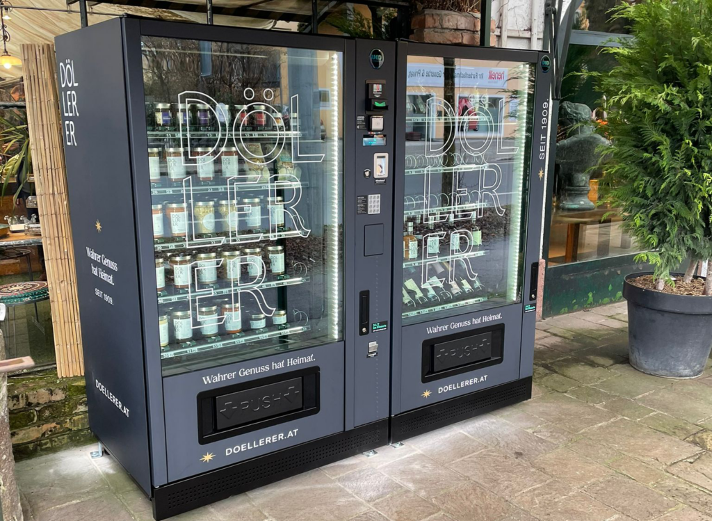 Mit diesem Premium-Microshop haben alle Salzburger:innen ab sofort die Möglichkeit, direkt am „Gourmet-Automaten“ die begehrten Döllerer-Gerichte mit Beilagen und Weinbegleitung zu kaufen, sollte ihnen die Anreise nach Golling zu weit sein.