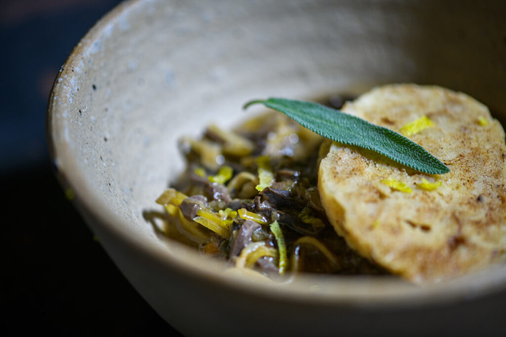 Mit der etwas ironischen „Stelze vom Wildhasen“ brachte Josef Floh auch den zweitbeliebtesten „Cut“ neben dem Rücken auf die Teller. Vorder- und Hinterläufe sind schließlich ein perfektes Schmorfleisch. Die leichte Süße des Hasenfleischs konterkarierte er mit einer Creme aus Radicchio, die feine Bitterstoffe mitbrachte. Und Floh stellt im zehngängigen Menü auch eine immer beliebter werdende Zubereitungsart vor: Asiatische Aromen, die mit dem zarten Fleisch gut harmonieren. So wird in der Sichuan-Küche Chinas gerne Hase verkocht. Vor allem die reichen Salzhändler, deren Gerichte Kenner unter dem „Xiaohebang-Stil“ kennen, bereiteten das Wildfleisch gerne im Wok und mit dem „roten Öl“ mit Chili und Sichuan-Pfeffer zu. Auch Ingwer wird hier gerne eingesetzt – so wie es Floh bei seiner gerösteten Hasenleber tat. Der im chinesischen Stil zubereitete Bao Bun, gefüllt mit Hasen-Bauch und Kimchi, brachte das Wildtier in einer zeitgemäßen „Streetfood“-Variante des Haubenkochs auf die Teller. Beflügelt von den gereiften Magnumflaschen Roter Veltliner und Riesling Stefan Bauers formte sich bei diesem außergewöhnlichen „Schüsseltrieb“ ein seltsamer Gedanke: Vielleicht sollte man es dem chinesischen Tierkreis nachmachen und 2024 ein „Jahr des Hasen“ ausrufen …