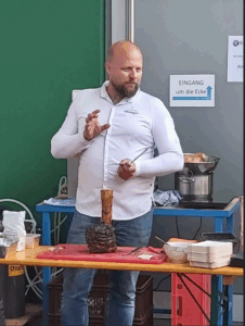 Grillprofi Hönegger gab praxisnahe Einblicke in Garmethoden, Temperaturkontrolle und die optimale Zubereitung verschiedener Fleischsorten. Auch das Thema Regionalität spielte eine Rolle – denn auf den Rost kamen hochwertige Fleischstücke aus der Umgebung.