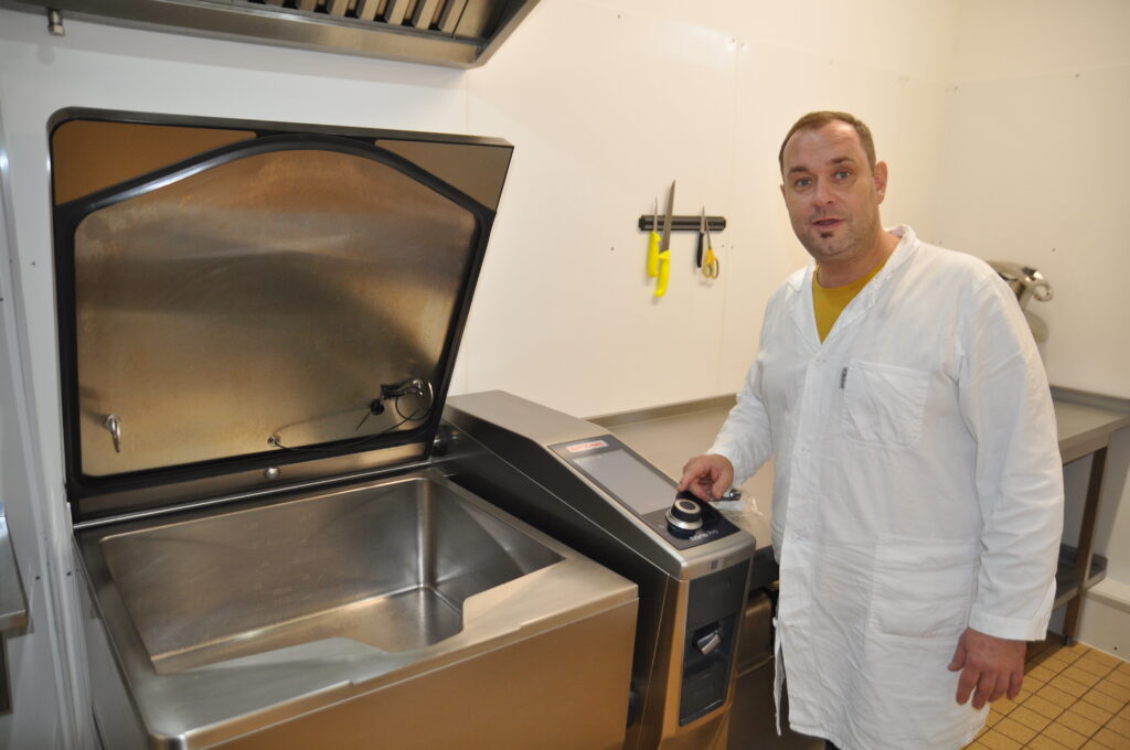 Der Zerlege- und Verarbeitungsbetrieb wurde in Hygienezonen unterteilt, damit sichergestellt ist, dass keine Kreuzkontamination stattfindet. Zudem finden die Wildzerlegung und die Verarbeitung zu Wildprodukten zeitlich getrennt an unterschiedlichen Tagen statt. Für die Rückverfolgung wird jede Wildkarkasse bzw. der Wildbretanhänger (Etikett des Jägers) EDV-mäßig erfasst und im Zerlegeein- und -ausgang erfasst. Die Betriebsküche wurde nach den aktuellen lebensmittelhygienischen Vorgaben geplant und realisiert. Da wurden keine Kompromisse eingegangen, und es wurde an nichts gespart.