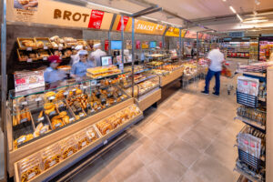 Auf nur 400m² lässt die Filiale in der Hüttelbergstraße mit einem Angebot von rund 8.000 Artikeln keine Kundenwünsche offen. Ein abwechslungsreiches Sortiment aus Produkten des täglichen Bedarfs sowie Delikatessen und Schmankerln erwartet die Kundinnen und Kunden. Dabei steht Frische im Vordergrund. Überzeugen können sich die Kundinnen und Kunden davon bei den Produkten aus der filialeigenen Backstation und dem umfangreichen Obst- und Gemüseangebot. Auch in der Feinkost-Abteilung, mit Frischfleisch in Bedienung, sind Beratung und Spitzenqualität oberstes Gebot. Der Coffee-to-go, ein eigener Getränkekühlraum und der Geldausgabeautomat im Foyer des Geschäfts runden das Angebot ab.