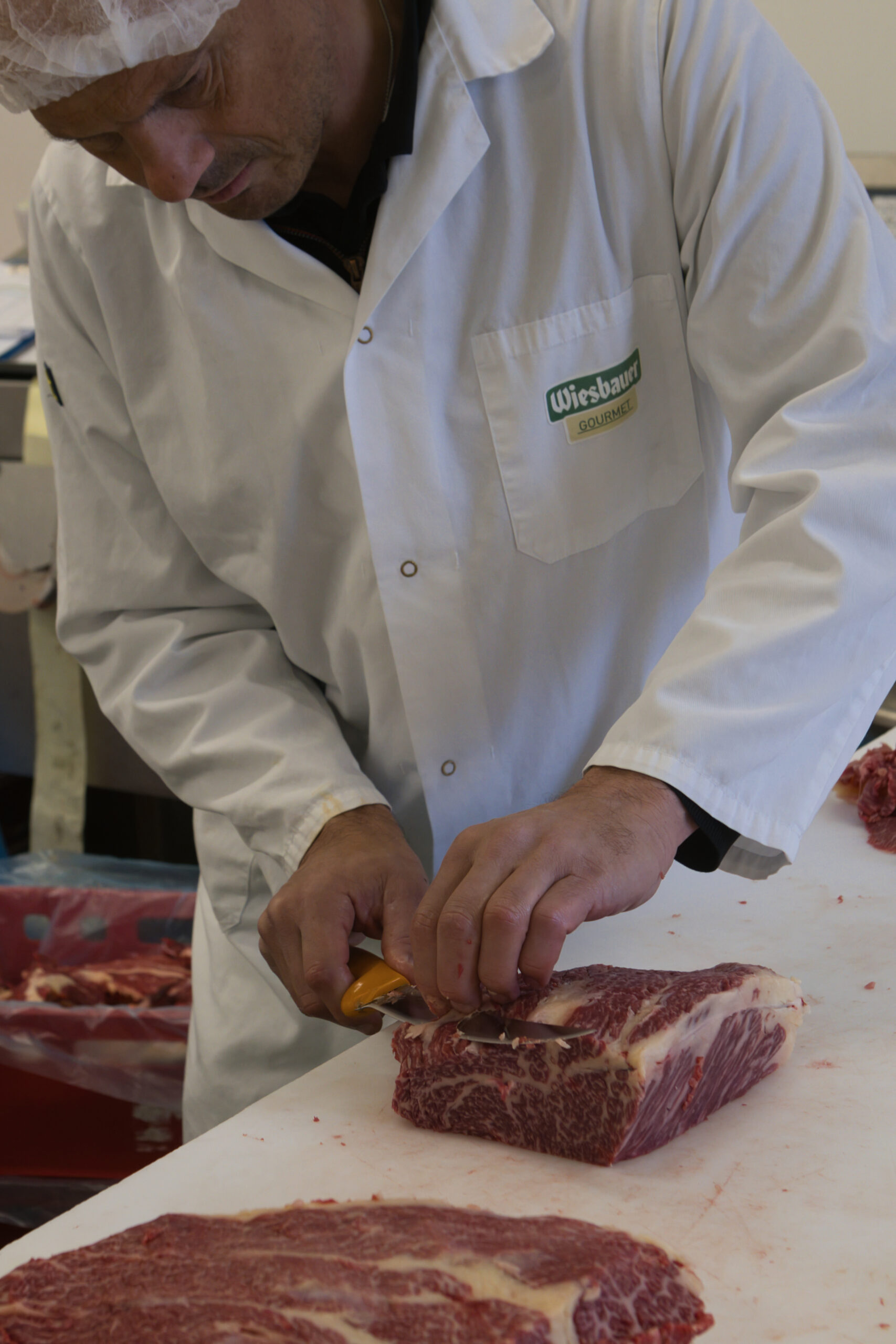 „Ich will für meine Tiere das Beste – und selbstverständlich auch für mein Fleisch das Beste“, für den ehemaligen Leistungssportler gibt es hier keine Abstriche. Daher lässt er die Schlachtkörper auch direkt zu Wiesbauer Gourmet nach Reidling bringen, wo das Fleisch fachgerecht zerlegt und für den Verkauf gerichtet wird. Federführend hierfür ist Betriebsleiter und Prokurist Erich Stiefsohn. „Ich bin so dankbar über diese gelungene Partnerschaft“, ist Zadrobilek happy, „Erich nimmt sich der Sache an und ist bereit, Zeit und Ideen in die Produkte zu stecken. Das ist wirklich genial!” Auch Stiefsohn freut sich über den Austausch: „Wir lernen bei jedem Stück auch etwas und profitieren so für unsere gesamte Produktion.”
