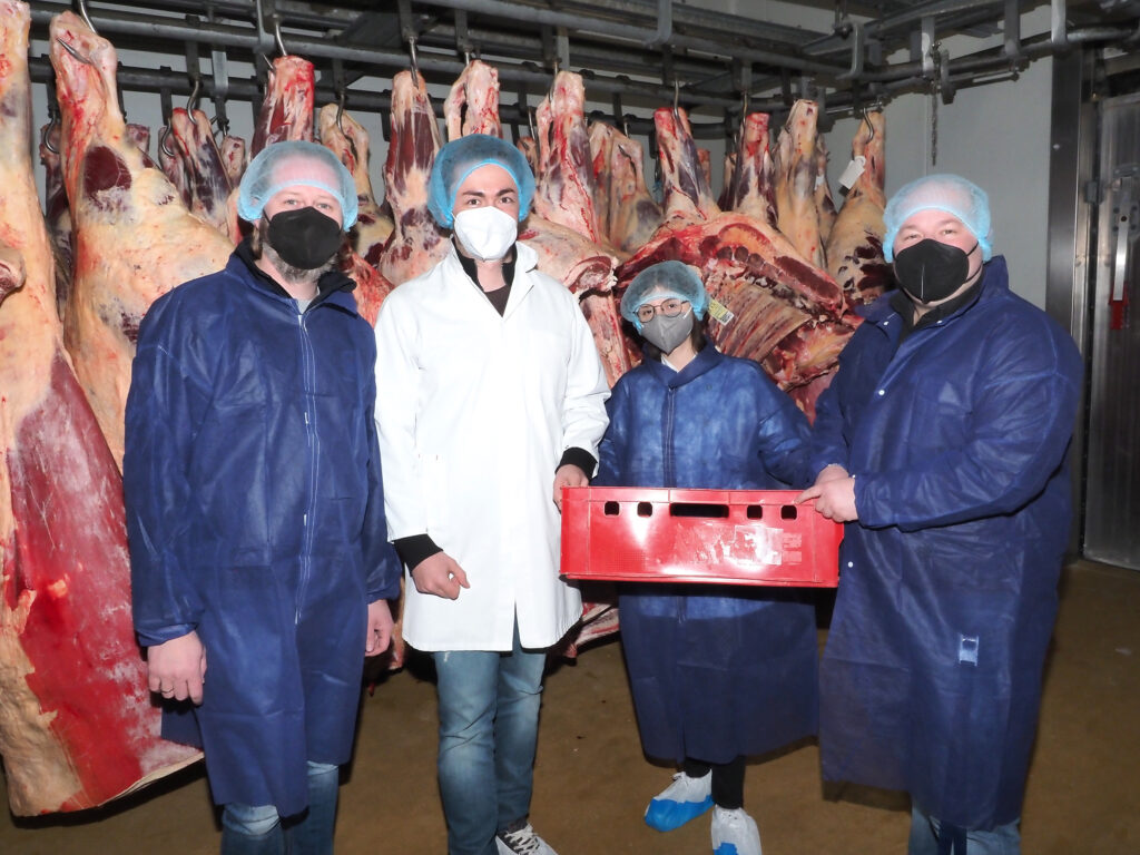 Besondere Angebote für Lehrlinge: Hofbräu-Restaurantleiter Uwe Hausleitner, Fleischerei- Juniorchef Christoph Höllerschmid-Haslinger, Lehrling Tiffany Riegler und Hofbräu-Geschäftsführer Thomas Kalchhauser (von links). © Martin Kalchhauser