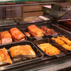 Dass eine attraktive Präsentation nicht immer mehr Platz benötigt, zeigt die Heißtheke in „Die KAILerei“. Die Produkte werden in Brätern auf der Platte 64 präsentiert. Das Wärmesystem ermöglicht die ansprechende und verkaufsfördernde Präsentation warmer Speisen in Theken zur Selbstbedienung oder in Bedienung. Die Speisen können in Töpfen, Kasserollen und Schüsseln aus Metall und Keramik präsentiert werden. Alternativ wird auch ein Aufsatz für die gängigen GN-Schalen angeboten. Die Platten werden einzeln und gradgenau bis 150 °C eingestellt und können auch für die Präsentation von kalten Speisen genutzt werden. Die kurze Aufwärmzeit und die zuschaltbare Oberhitze durch Infrarot-Wärmestrahler ermöglichen es, das Warmhaltesystem schnell in Betriebsbereitschaft zu bringen. Gegenüber herkömmlichen Wärmesystemen wird zudem deutlich weniger Energie verbraucht.