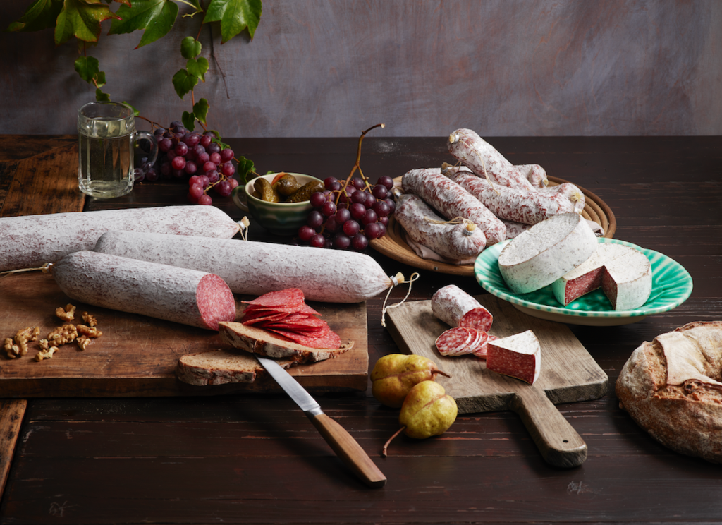 Diese tägliche Nachjustierung hat viele Facetten, von Reaktion auf die Außentemperatur bis zum Luftaustausch in den Reifekammern, der nur bei gutem Wetter erfolgen sollte. Jedes dieser Puzzleteile dient dem Geschmack, der übrigens seit Jahren ganz ohne Geschmacksverstärker auskommt. Reines Schweinefleisch, Gewürze und Speck machen die Rohwurst aus. Wobei der Fettanteil niedriger sei, als oft angenommen wird: circa 25 Prozent einer Salami besteht, je nach Rezept, daraus.
