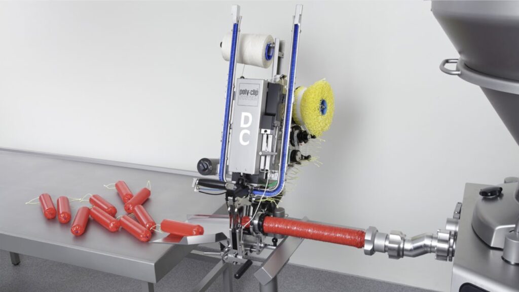 Die Maschine kann mit Fadenspender, Gurtschlaufenautomatik und dem nagelneuen ES 6000 Etikettiersystem ausgestattet werden. Mit den Doppelclippern lassen sich alle Produkte – Einzelportionen oder Ketten, Stangenware, halbe oder ganze Ringe – rationell herstellen. Sie verschließen Naturdarm im Kaliberbereich bis 50 mm, Kollagen- und Faserdarm bis 90 mm sowie Kunststoffdarm bis 115 mm. Die DC700 eignet sich auch ideal für Naturdärme und „Kranzerln“. Drechsler empfiehlt: „Als Kaliberbereich kann man effizient von 50 bis 115 mm produzieren. Sollten kleinere Kaliber vorherrschen, ist der kleine Bruder DC600 das geeignete Produkt.“