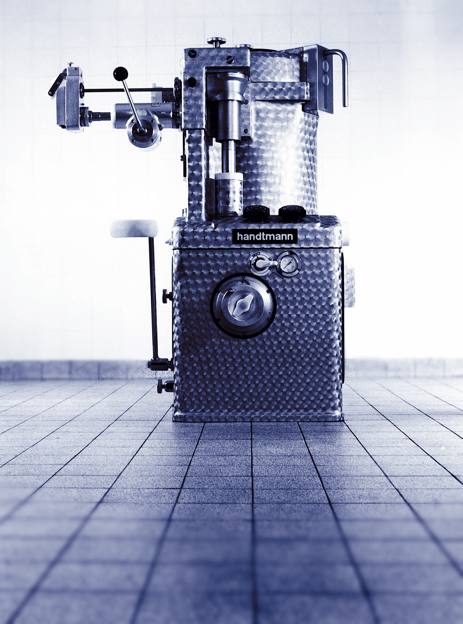 1953 stirbt Karl Handtmann mit 63 Jahren, alleiniger Inhaber ist nun Arthur. Parallel zur Neuausrichtung auf den Leichtmetallguss entscheidet sich der Maschinenbau-Ingenieur dafür, einen eigenen Maschinenbau zu etablieren, um die Firma stabiler aufzustellen. Ausschlaggebend hierfür ist Anfang 1953 die Frage eines alten Schulfreundes, ob er eine handbetriebene Wurstfüll- und Portioniermaschine bauen könne. Mit Begeisterung konstruiert Handtmann daraufhin die erste manuelle Portionier- und Abdrehmaschine R 12.