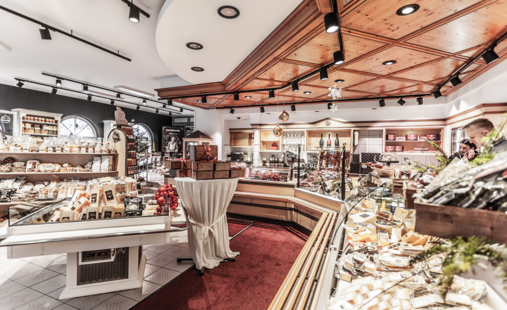 Plangger Delikatessen hat in Kooperation mit dem preisgekrönten Metzgereibetrieb Krösbacher das Verkaufsgeschäft der renommierten Bergkäserei Biedermann im idyllischen Tannheimer Tal übernommen. Im Hofladen in Grän gibt es den berühmten Bergkäse der Käserei Biedermann, Feinkost- und Delikatessenartikel der regionalen Plangger-Partnerbetriebe und die innovativen Produkte von Fleischermeister Helmut Krösbacher. © Beigestellt