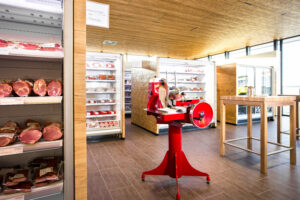 Weiters im Programm und eine Kooperation mit mehreren Betrieben, ist Geflügel unter der Marke Steirerhuhn, die es in Bio und konventionell gibt. Innereien (Zunge, Leber …) der beliebte Beinschinken vom Ötscherblickschwein und Würste, die hier am Standort produziert werden, komplettieren das Sortiment. Apropos Sortiment: Bio macht rund 30 Prozent aus und wird auch hier immer wichtiger. Beliebt bei den Konsumenten sei auch das Faschierte. Im Unterschied zum Supermarkt wird es hier nicht in Verpackungen verschweißt und mit Gasen zugedröhnt, sondern schockgefroren in Salamiform angeboten.