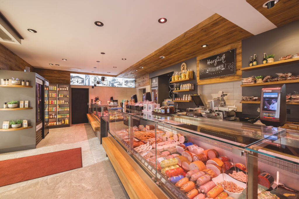Schon seit einigen Jahren hat man sich bei den Knauers mit dem Thema „Geschäftsumbau“ beschäftigt. Der Ausbruch von Corona hat den eigentlich für 2020 vorgesehenen Start des Unterfangens noch einmal verzögert, letztes Jahr war es dann aber so weit, die Familie Knauer entschied sich trotz aller mit Corona verbundenen Herausforderungen, vor allem der komplette Wegfall des Wintertourismus in der Saison 2020/2021 traf die Fleischerei hart, den Neubau des 60 m2 großen Fachgeschäfts umzusetzen. Als Partner für das ambitionierte Vorhaben suchte man sich den bayerischen Ladenbauprofi Niederberger-Kramer aus.