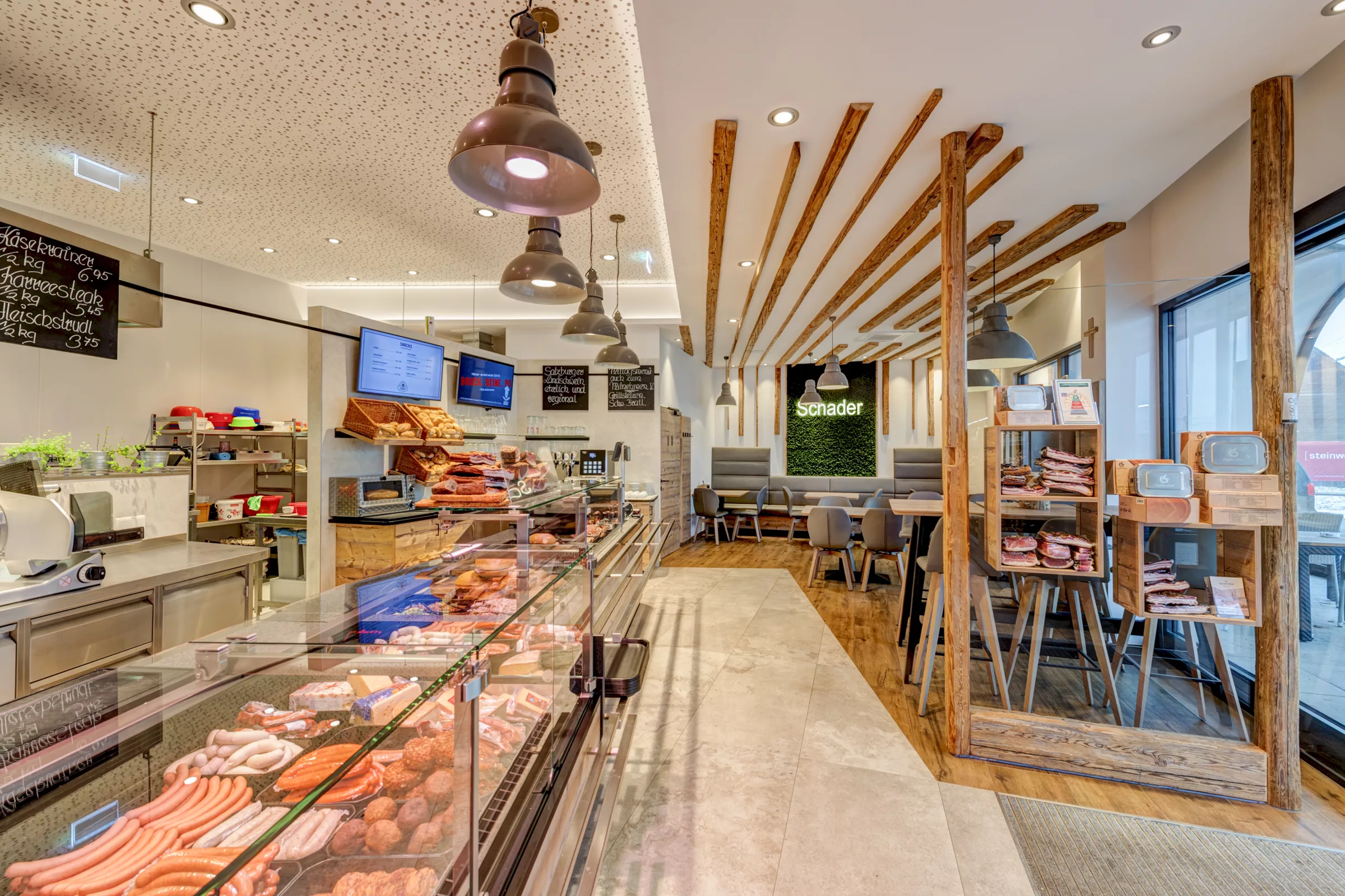 Ein wunderbares Beispiel für ein modernes Fachgeschäft. Die neue Filiale der Fleischerei Schader ist ein wahrer Genusstempel. © Michaela Begsteiger