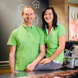 Petra Scharf und Jürgen Bauer verkaufen ihre Produkte weiterhin im Nah& Frisch-Markt in Pfaffenschlag. © Nah & Frisch