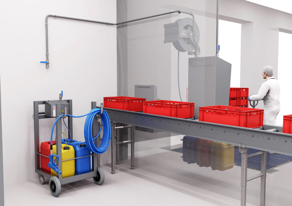 Die Niederdruck-Schaumreinigungstechnologie eignet sich ideal für die professionelle Reinigung von Betriebsstätten, indem sie Effizienz und Hygiene kombiniert. Diese Technik verwendet druckerhöhtes Wasser bis zu 27 bar und geschäumte Chemie, um Anlagen und Räume zuverlässig zu reinigen. Im Betrieb platzierte Satelliten steuern die Medien, während die NEXT-Technologie die Verwendung von bis zu drei Chemikalien nacheinander über einen Ausgang ermöglicht. Das modulare System passt sich perfekt an die Bedürfnisse von Handwerks- und Industriebetrieben an und ermöglicht individuelle Anpassungen durch Komponenten wie Spül-, Schaum- und Reinigungsdüsen,was zu verbesserten Ergebnissen bei Abklatschproben und Audits führt.