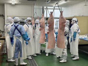 Danach konnte ich das firmeneigene Seminarzentrum besuchen, das wie ein Museum aufgebaut ist und regelmäßig von Schulklassen besucht wird. Hier lernte ich nicht nur über die Fleischverarbeitung, sondern auch über die kulturelle Bedeutung und den Respekt für die geschlachteten Tiere. Auf dem Gelände entdeckte ich eine Gedenktafel für die Seelen der Tiere, die einmal jährlich in einer Zeremonie geehrt werden. Diese Zeremonie zeigt den tiefen Respekt der Japaner vor den Tieren und ihrer Lebensweise.