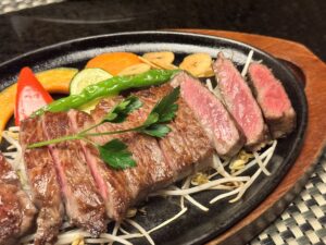 Am Abend erkundete ich einen Supermarkt in der Nähe der Tokyo Central Station, der mit absoluter Transparenz bei der Fleischauswahl beeindruckte. Jedes einzelne Stück war mit einer Nummer versehen, die es dem Kunden ermöglichte, über eine App detaillierte Informationen über das Fleisch zu erhalten – von der Herkunft über Geschlecht und Alter des Tieres bis hin zum Schlachtdatum. Diese innovative Art der Kennzeichnung unterstreicht die Bedeutung von Qualität und Rückverfolgbarkeit in der japanischen Lebensmittelindustrie. Anschließend genoss ich ein unvergessliches Abendessen im Satou Steak House, das vielen aus dem Film „Steak (R)evolution“ bekannt ist. Die Vorspeise bestand aus einer interessanten Kombination von Seegurke auf Karottenmousse, die die Vielfalt und Kreativität der japanischen Küche widerspiegelte. Das Highlight des Abends waren jedoch die verschiedenen Wagyu-Gerichte, die zur Auswahl standen. Begleitet von einer Vielzahl von Beilagen erlebte ich einen kulinarischen Höhepunkt mit bestem Matsusaka Wagyu, der die Perfektion japanischer Teppanyakikunst und Fleischqualität widerspiegelte.