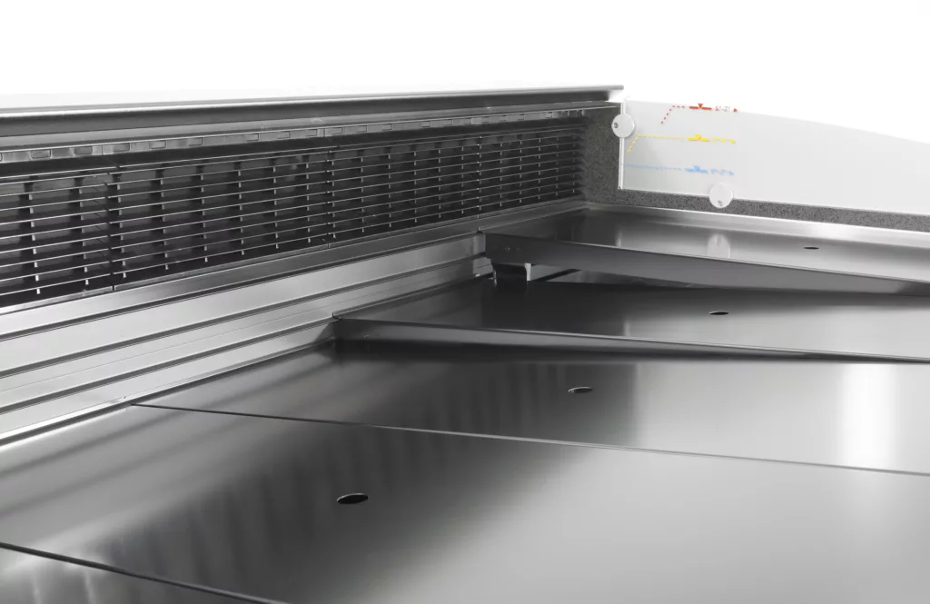 Die Nachtabdeckung der Waren in der Kühltheke reduziert Zeit und Kosten. Wichtig dabei ist, dass die Nachtabdeckung an der Prallscheibe anliegt und sich über dem Rückluftgitter befindet. Es ist zudem darauf zu achten, dass die Abdeckungen lückenlos aneinandergelegt werden. So wird eine unkontrollierte Luftzirkulation vermieden. Werden die Nachtabdeckungen nicht lückenlos aneinandergelegt, entsteht ein Luftspalt, der das optimale Lagerklima stören kann.