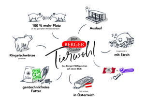 Rudolf Berger: „Wir haben bereits vor Jahren begonnen, in der Begleitung durch ,Vier Pfoten‘ ein Projekt umzusetzen, wo deren ‚Silber-Standard‘, der im Wesentlichen ‚T W 100‘-Kriterien entspricht, verpflichtend ist. Mit den Kollegen von Hütthaler waren und sind wir da die Einzigen. Das nützt aber nicht viel, wenn es unseren Berger-Tierwohl-Standard gibt, den von Hütthaler und jeder Marktteilnehmer im Lebensmittelhandel setzt noch was Eigenes drauf. Für den Konsumenten muss das übersichtlicher werden!