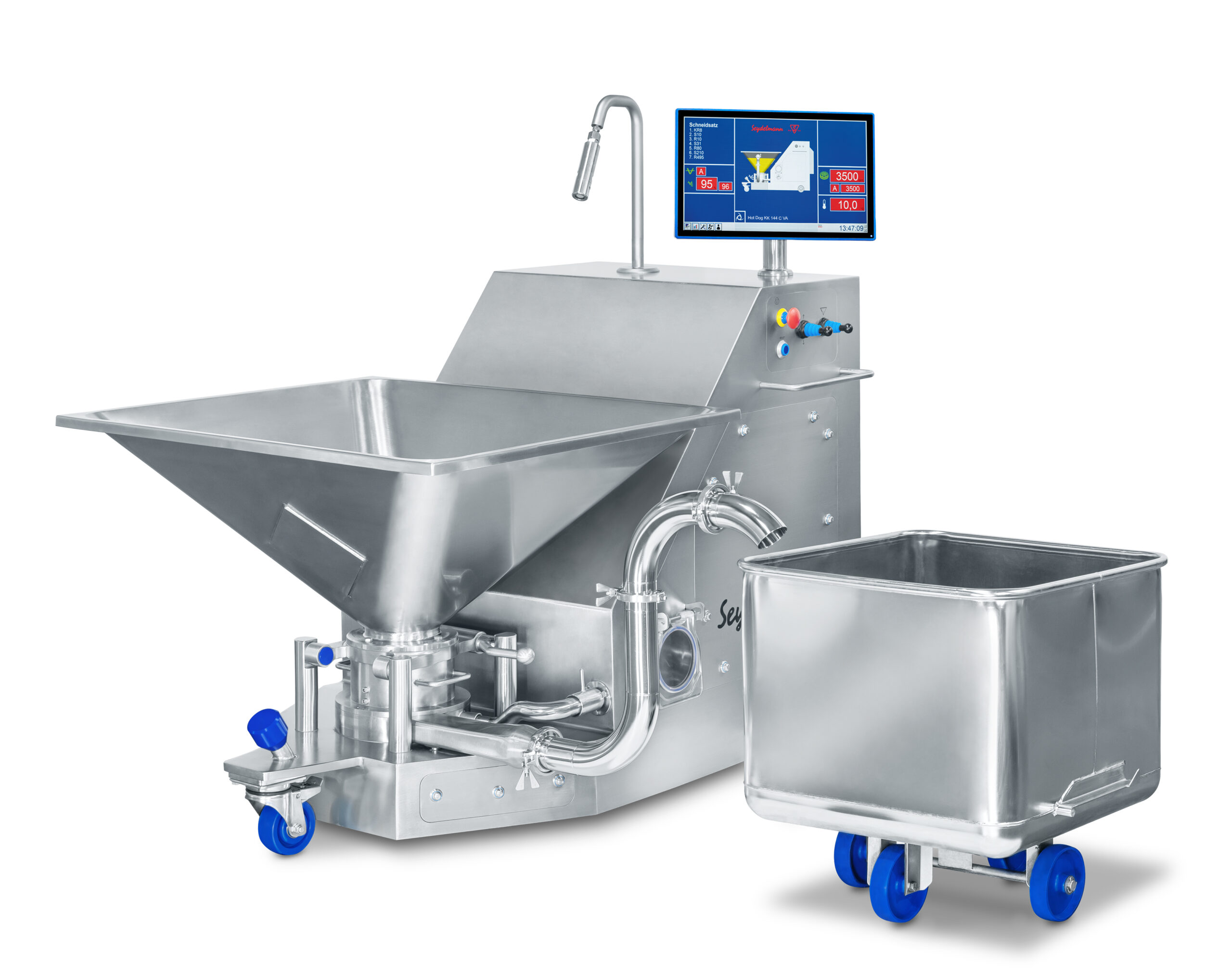 Die Einführung der neuen Steuerung Auto-Command 500 markiert einen weiteren Fortschritt. Sie ist nun Standard bei allen Handwerkskuttern von Seydelmann und ermöglicht neben dem manuellen Betrieb eine automatische Programmsteuerung unterschiedlicher Rezepturen. Diese intuitive und benutzerfreundliche Steuerung vereinfacht das Rezeptmanagement erheblich und trägt dazu bei, den Fachkräftemangel in der Branche zu adressieren.