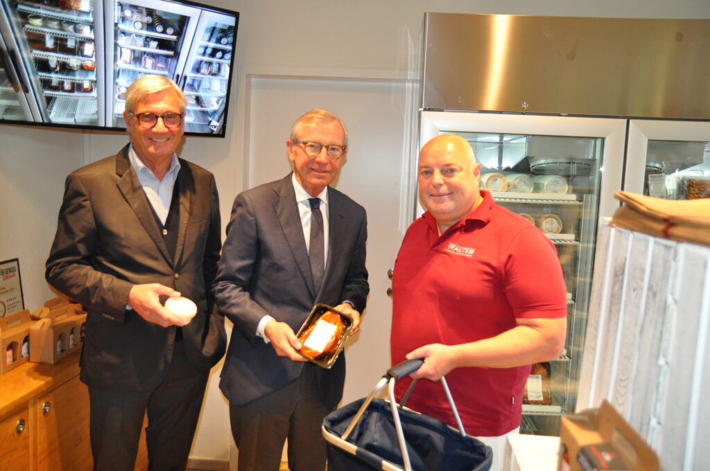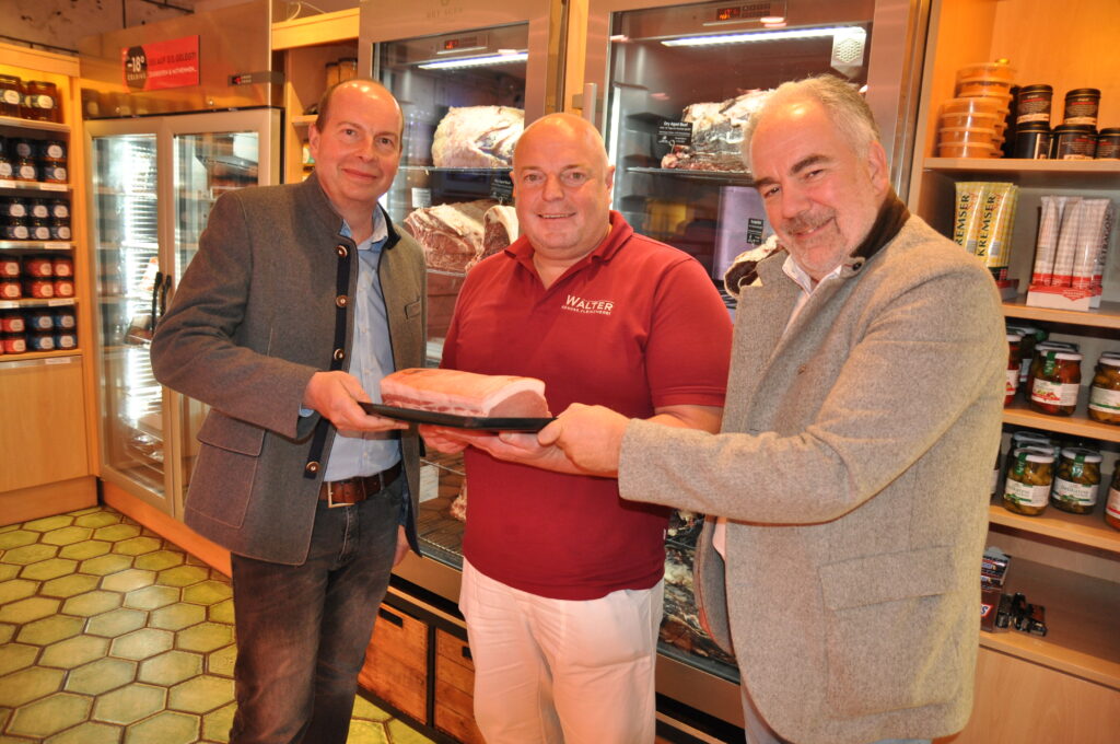 Branchenprominenz nahm an der Eröffnung teil (v. l.): der Geschäftsführer des Fleischerverbandes Wolfgang Hartl, sein Verkaufsleiter Stefan Kendler und der Gastgeber Hans Walter.© HaRo