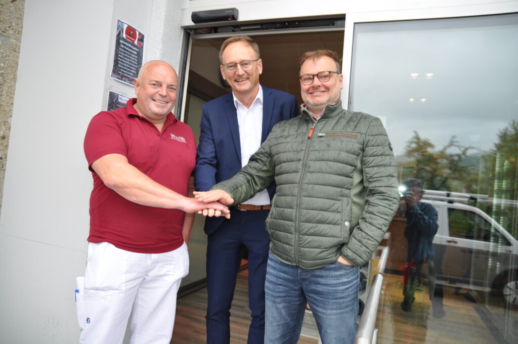 Weitere Gratulanten bei Hans Walter (Mitte): Gustino-Verkaufsleiter Rudi Eder (l.) und Zaltech-Verkaufsleiter Alexander Lackner.© HaRo