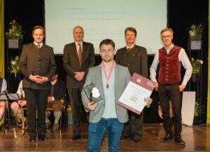 Peter Windhager von der Firma Speckmeister e.U. aus Münzbach holte sich die Trophäe in der Kategorie „Rohwürste – gewerbliche Produktion“ ab.
