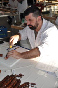 Fleischermeister Josef Teufl aus Ruprechtshofen mit voller Konzentration bei der Überprüfung eines Exponats.