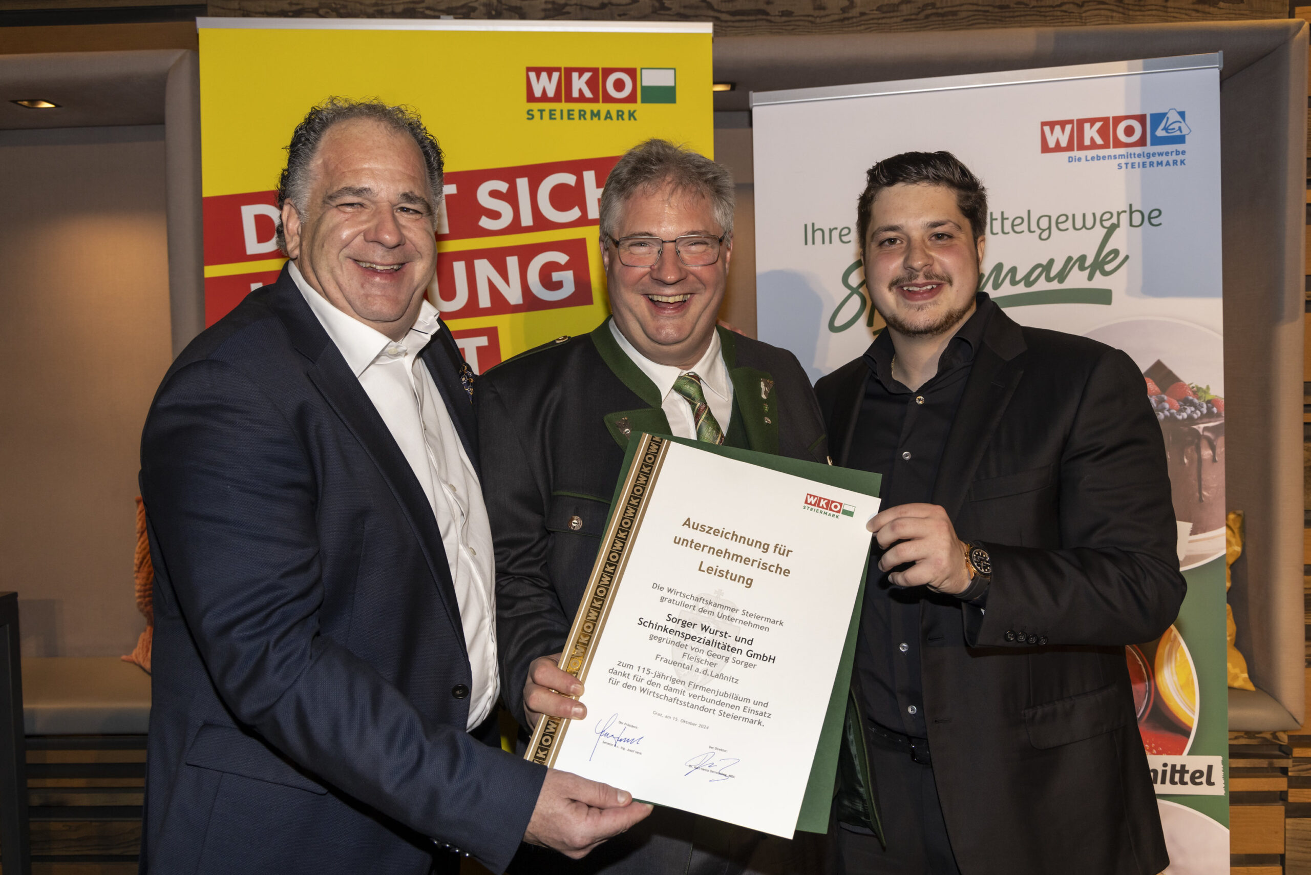Bei der Ehrungsveranstaltung langjähriger Mitglieder des Lebensmittelgewerbes der WK Steiermark wurden Simone Tieber und Ferdinand Sorger für ihre Verdienste ausgezeichnet. Simone Tieber, die für die Fleischerei Moßhammer in Graz arbeitet und Österreich bei den WorldSkills 2024 in Lyon vertreten hat, erreichte den dritten Platz in der erstmals vertretenen Disziplin Fleischverarbeitung. Diese Disziplin wurde als Showcase-Wettbewerb abgehalten und bot so einen besonderen Einblick in die handwerklichen Fähigkeiten. Ferdinand Sorger, der als neuer österreichischer Nationalexperte fungiert und Simone intensiv auf die WorldSkills vorbereitet hat, wurde ebenfalls für sein Engagement geehrt. Die Ehrung übernahmen KommR Raimund Plautz, Ing. Josef Moßhammer und Dr. Karl- Heinz Dernoscheg,MBA. Siehe Bild oben.