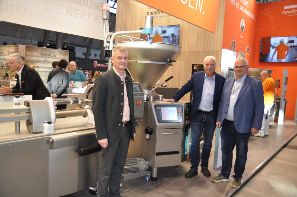 PDCA von Polyclip. © HaRo mehr anzeigen Johann Penias (l.) und sein Techniker Michael Stadler vor dem aktuellsten Rauch und Kochschrank von REICH. © HaRo mehr anzeigen Raimund Plautz (l.) zu Gast bei Johann Penias (r.) und seinem Techniker Michael Stadler auf dem Tipper-Tie-Stand. © HaRo mehr anzeigen Laska-Linz Mitarbeiter Christian Schlair (r.) konnte Bundesinnungsmeister Raimund Plautz (Mitte) und den Leiter der Abteilung Produktion der TANNDornbirn, Josef Ruloff, auf dem Handtmann-Stand begrüßen. © HaRo mehr anzeigen Gramiller-Verkaufsleiter Christian Hofer (l.) und Vertriebsmanager Thomas Dippel mit dem VEMAG-Füllermodell DP 6..© HaRo mehr anzeigen Bundesinnungsmeister