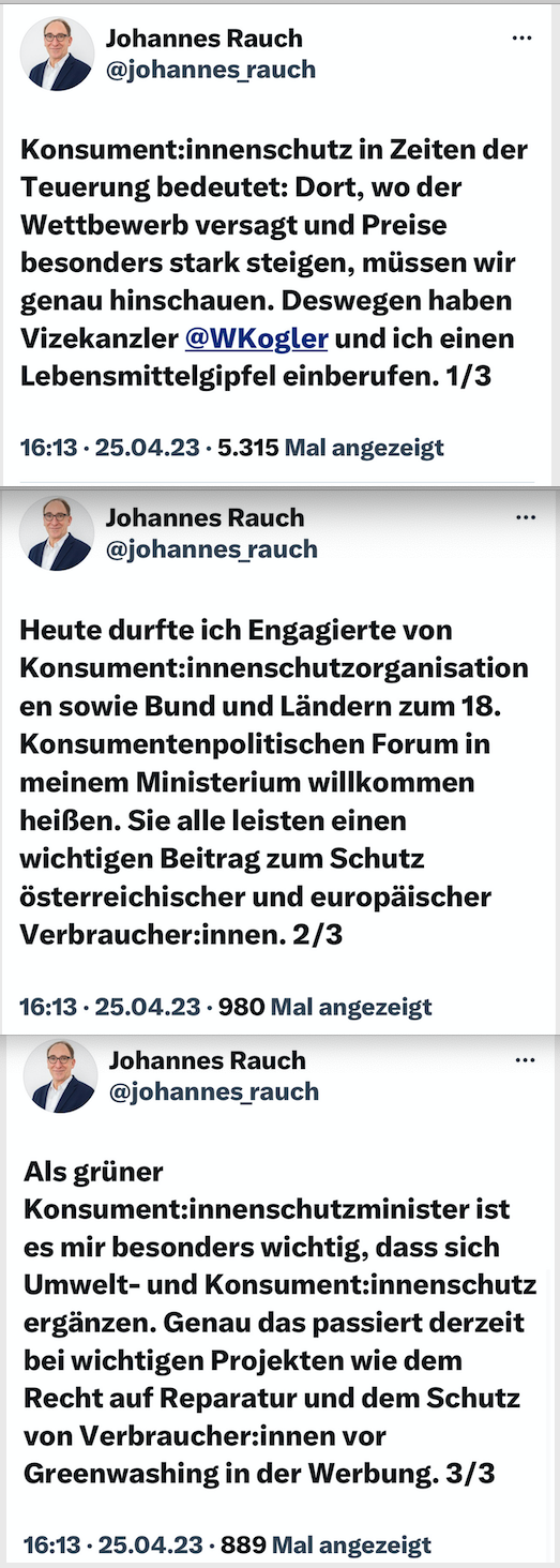 Wie er auf Twitter kürzlich verlautete, hat der Minister vor sich der Sache anzunehmen und sich gemeinsam mit Vizekanzler und Parteikollegen Werner Kogler und mit den Vertretern der Handelsketten zu einem Austausch treffen zu wollen. Hier soll die Frage geklärt werden, warum die Preissteigerungen bei Lebensmitteln deutlich über der ohnehin hohen Inflationsrate – im März 9,2 Prozent auf Jahressicht – liegen. Wie das Ministerium kürzlich verlautete, wurde bereits eine Untersuchung der Bundeswettbewerbsbehörde dazu gestartet und es wurden zuletzt 1500 Lieferanten des Lebensmittelhandels dazu befragt.
