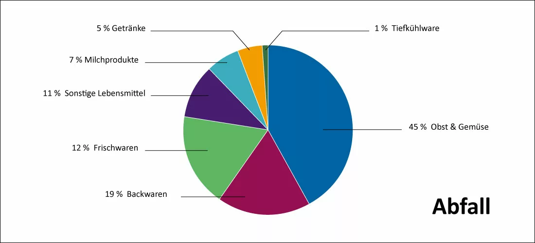 64 Unternehmen haben die weggeworfenen Lebensmittelmassen Warengruppen zugeordnet. Die Aufteilung sieht wie folgt aus: