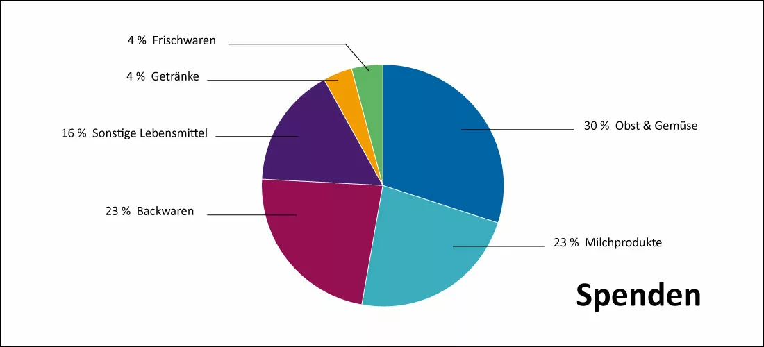 51 Unternehmen haben freiwillig die gespendeten Lebensmittelmassen Warengruppen zugeordnet: