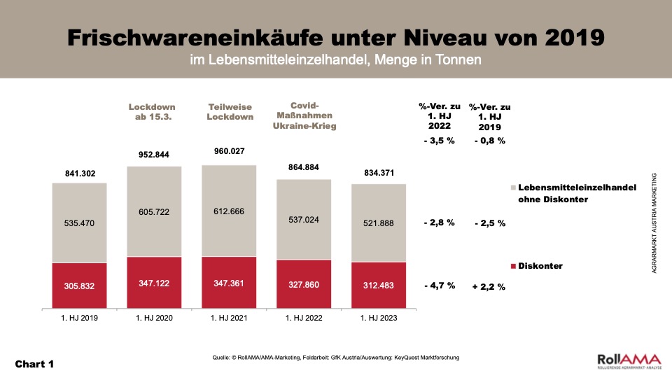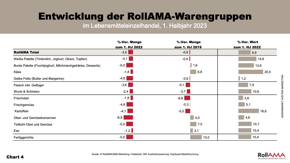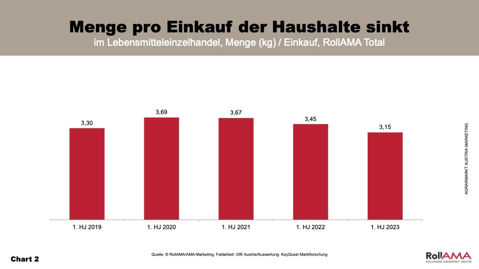Die Gründe dafür sind einerseits ein höherer Außer-Haus-Konsum nach Ende aller Restriktionen, aber auch eine spürbare Zurückhaltung beim Einkauf aufgrund der inflationsbedingt höheren Preise.