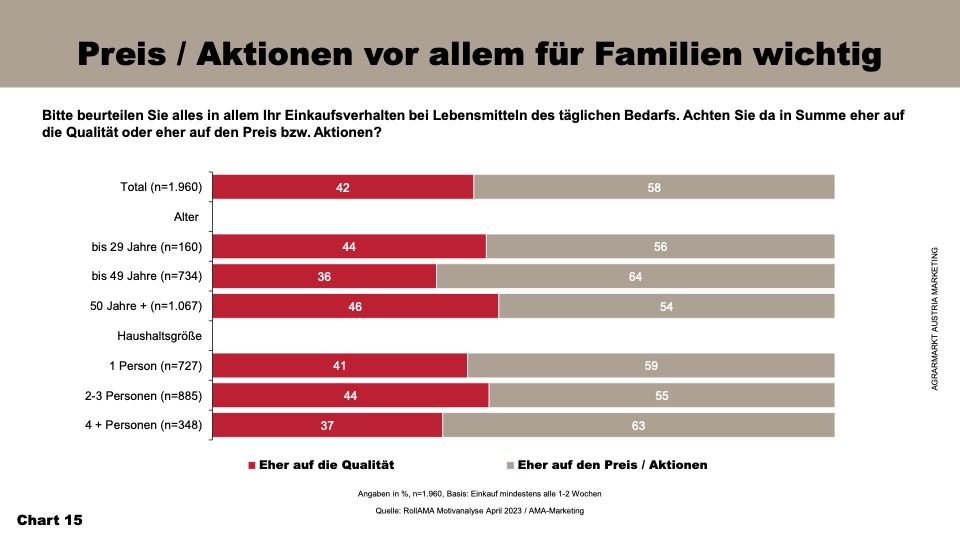 Allen voran Familien und Mehrpersonen-Haushalte schauen stärker auf den Preis (Chart 15).