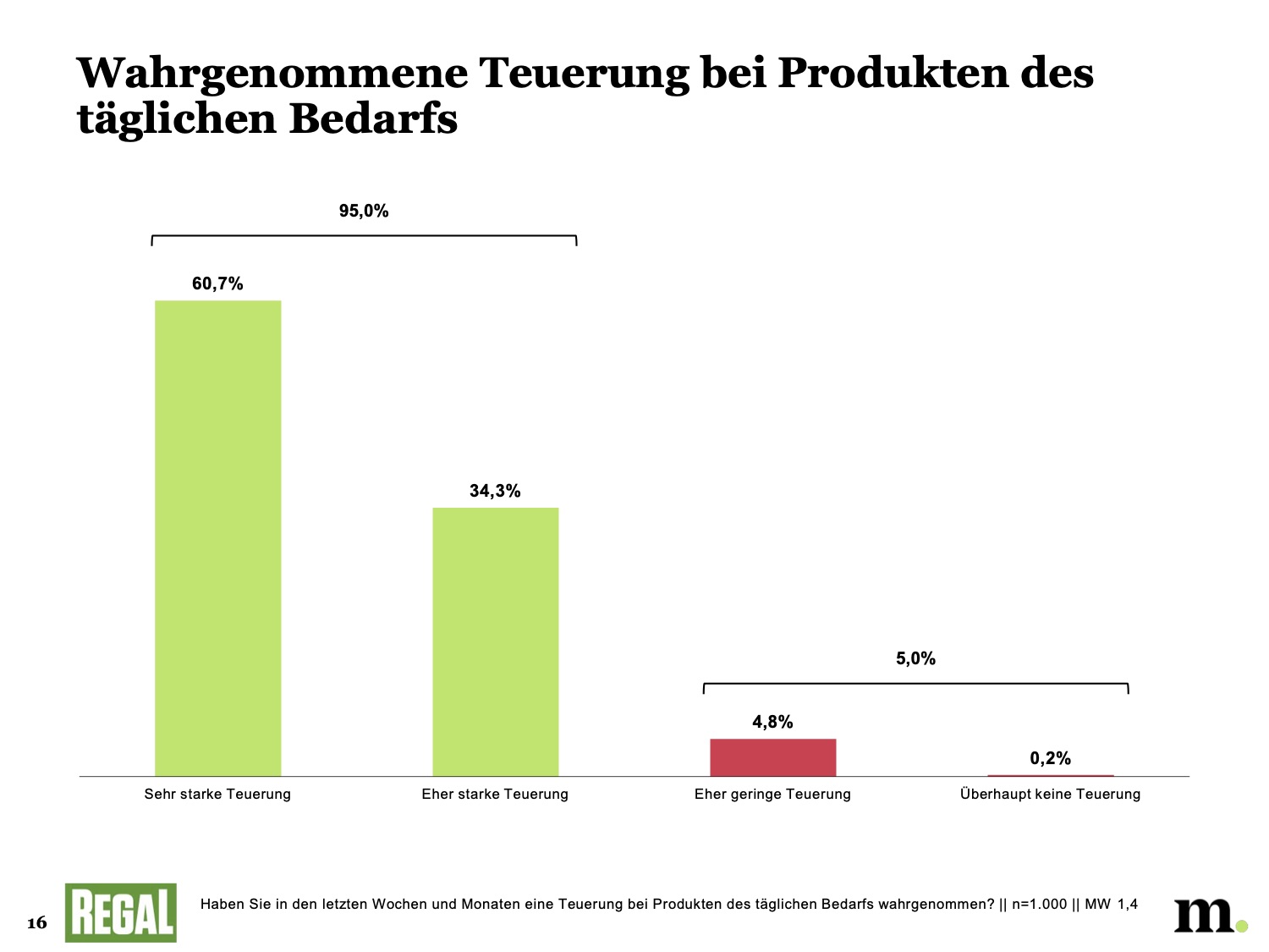 “Die Preissteigerungen der letzten Monate gehen an der gesamten Bevölkerung nicht spurlos vorbei: 95% nehmen eine starke oder eher starke Teuerung wahr”, erläutert Thomas Schwabl, Geschäftsführer von Marketagent.