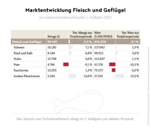 Eine gute Grillsaison und weniger strikte Corona-Beschränkungen als im Vorjahr ließen auch die Fleischeinkäufe wieder steigen. So landeten um sieben Prozent mehr Schweinefleisch und fünf Prozent mehr Rindfleisch in den Einkaufskörben – das jedoch zu unterdurchschnittlichen Preisen sowie starken Aktionen.
