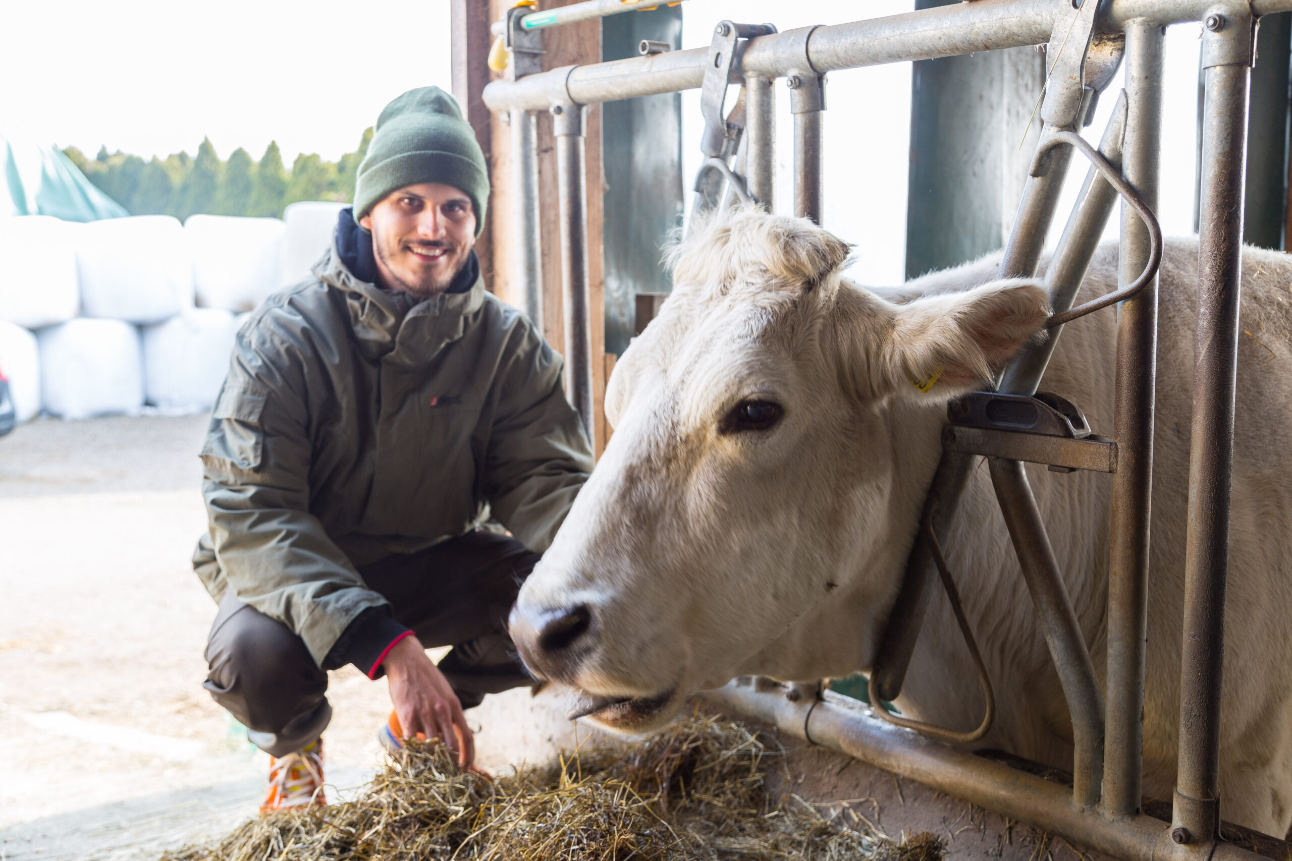 „Bei uns hat alles vor 18 Jahren angefangen“, erzählt Nino Sifkovits und hockt sich neben Cipriani. Die stattliche Dame zog als Erste ihrer Rasse von Italien in die Steiermark und wuchs sozusagen mit dem Jungbauern gemeinsam auf. Heute ist sie die älteste Rinderdame im Stall. Die Stiere werden bis zu zwei Meter groß und erreichen bis zu 1800 Kilo. Die Kühe sind etwas kleiner und leichter. Dennoch zählen sie zu den größten und ältesten Rinderrassen der Welt. Die Kälber werden mit braunem Fell geboren und bekommen erst ausgewachsen die leuchtend weiße Farbe. Ähnlich wie die Lipizzaner.