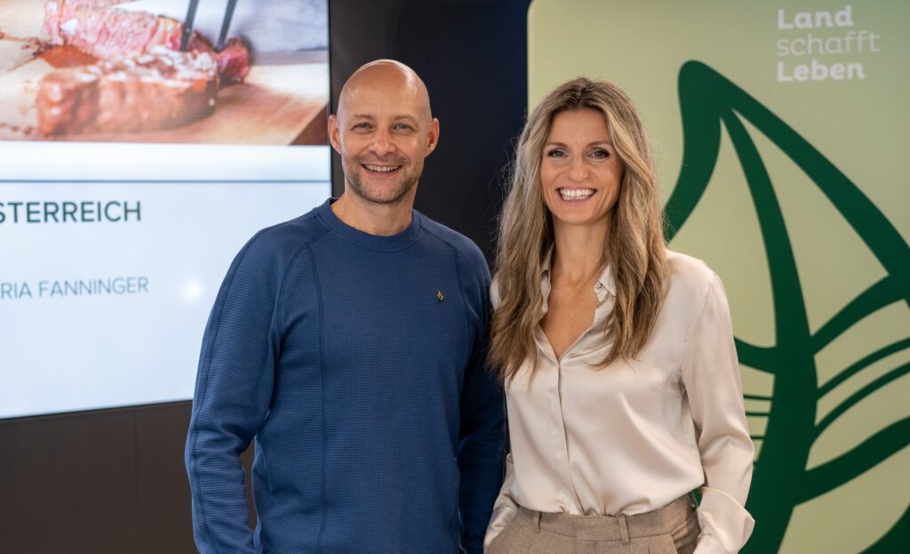 Das Gründungs-Duo von Land schafft Leben, Hannes Royer und Maria Fanninger, hat ausgewählte Ergebnisse der jüngsten Recherche des Vereins zum Thema Rindfleisch im Rahmen einer Pressekonferenz präsentiert. (© Land schafft Leben)