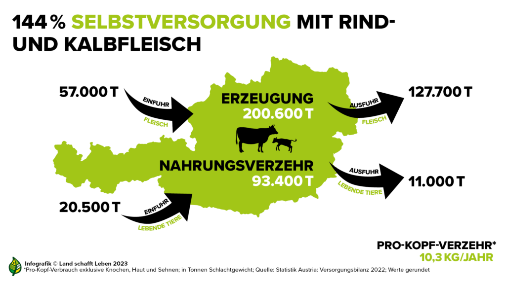 Österreich könnte sich mit Rind- und Kalbfleisch gut selbst versorgen, importiert und exportiert jedoch auch große Mengen; (© Land schafft Leben)